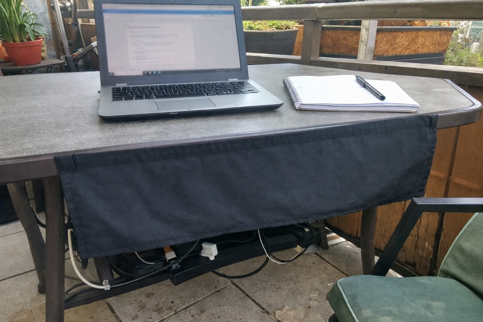 This one is the most experimental item in my kit. I tried the under desk privacy panel less for traditional office privacy and more because I am oddly sensitive to visible clutter under a table, especially when I am working somewhere semi-public. For a fixed home desk or even a sheltered balcony setup, I can see the appeal. It hides cables, bags, and the messier parts of a workstation so your eye is not constantly catching them. For truly mobile café and park use, though, I think it is harder to justify unless you have a very specific portable table setup.