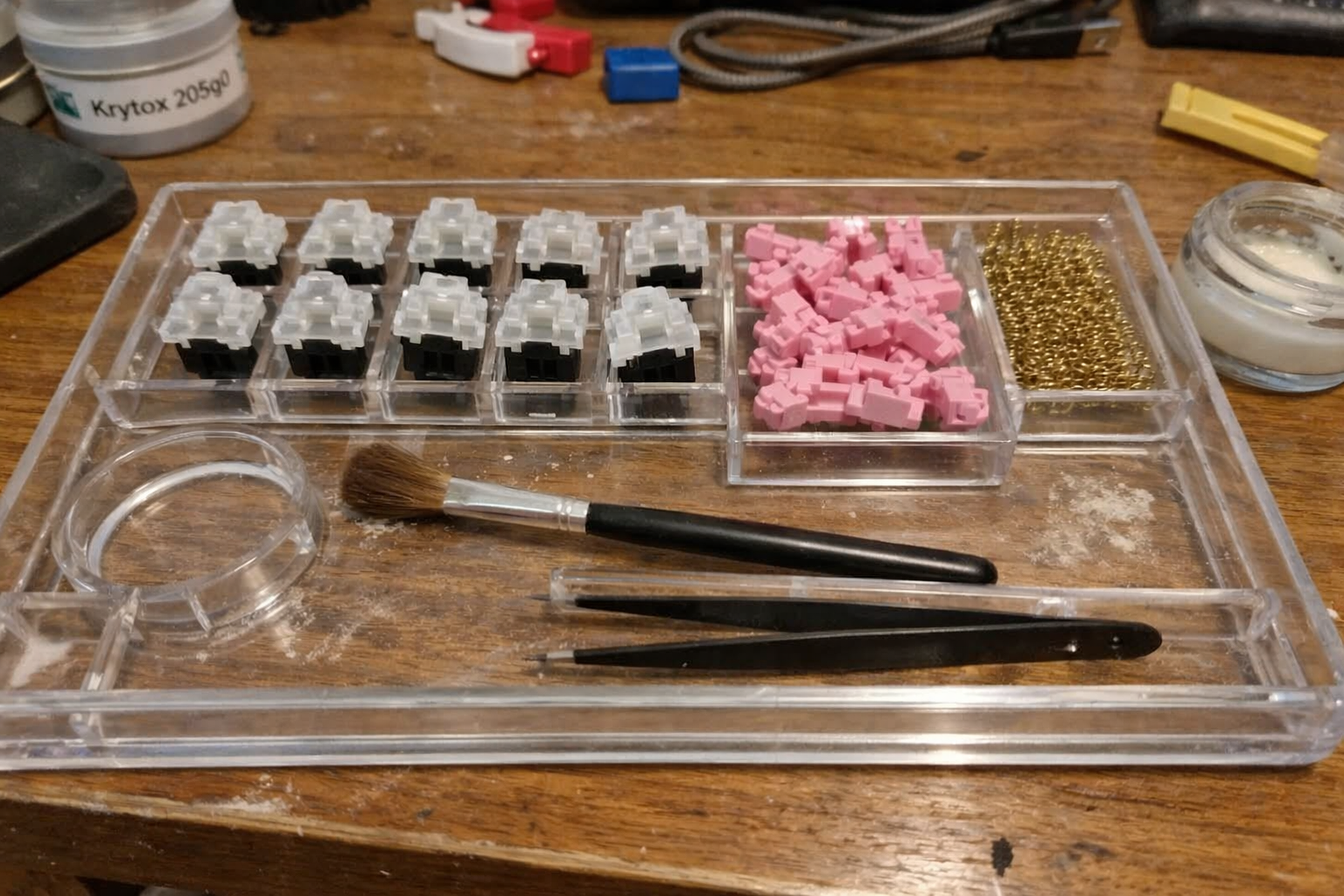 On a small bench, this matters because it keeps a lubing session contained. I can prep a batch, work through it methodically, and clear the station when I’m done instead of leaving half-disassembled switches in random containers for three days.