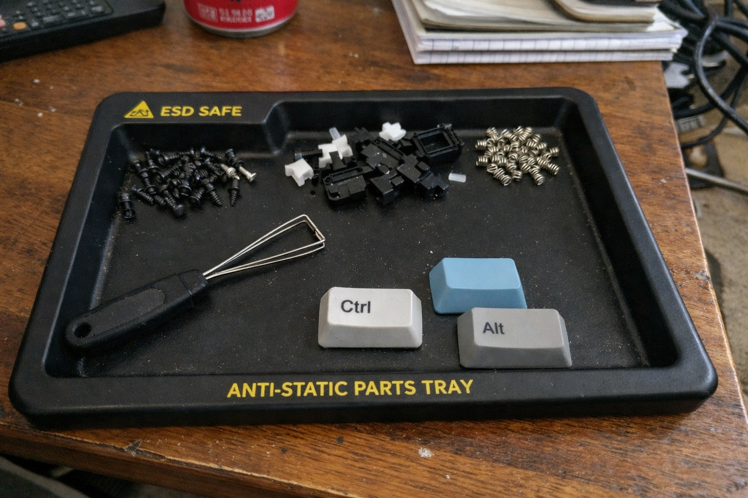 This is the product that saved me from the “parts graveyard” part of the equation. I added the iFixit anti-static project tray after losing track of screws and switch parts one too many times. It sounds minor until you’ve spent 20 minutes looking for a stabilizer wire that rolled under a monitor arm base. In a tiny workspace, containment matters as much as the keyboard itself.