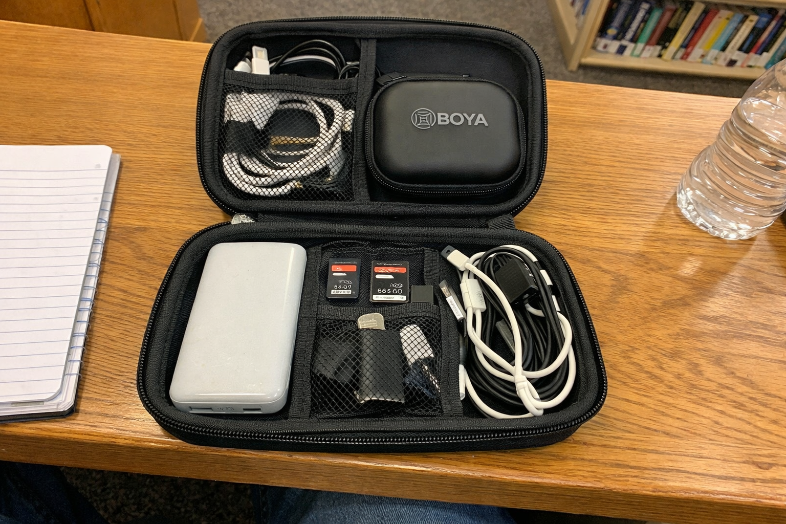And fourth, my bag was chaos. Cables, adapters, SD cards, lip balm, receipts, chargers — everything ended up in one pocket, and then I’d spend two full minutes digging around while pretending I was still “quickly setting up.”
